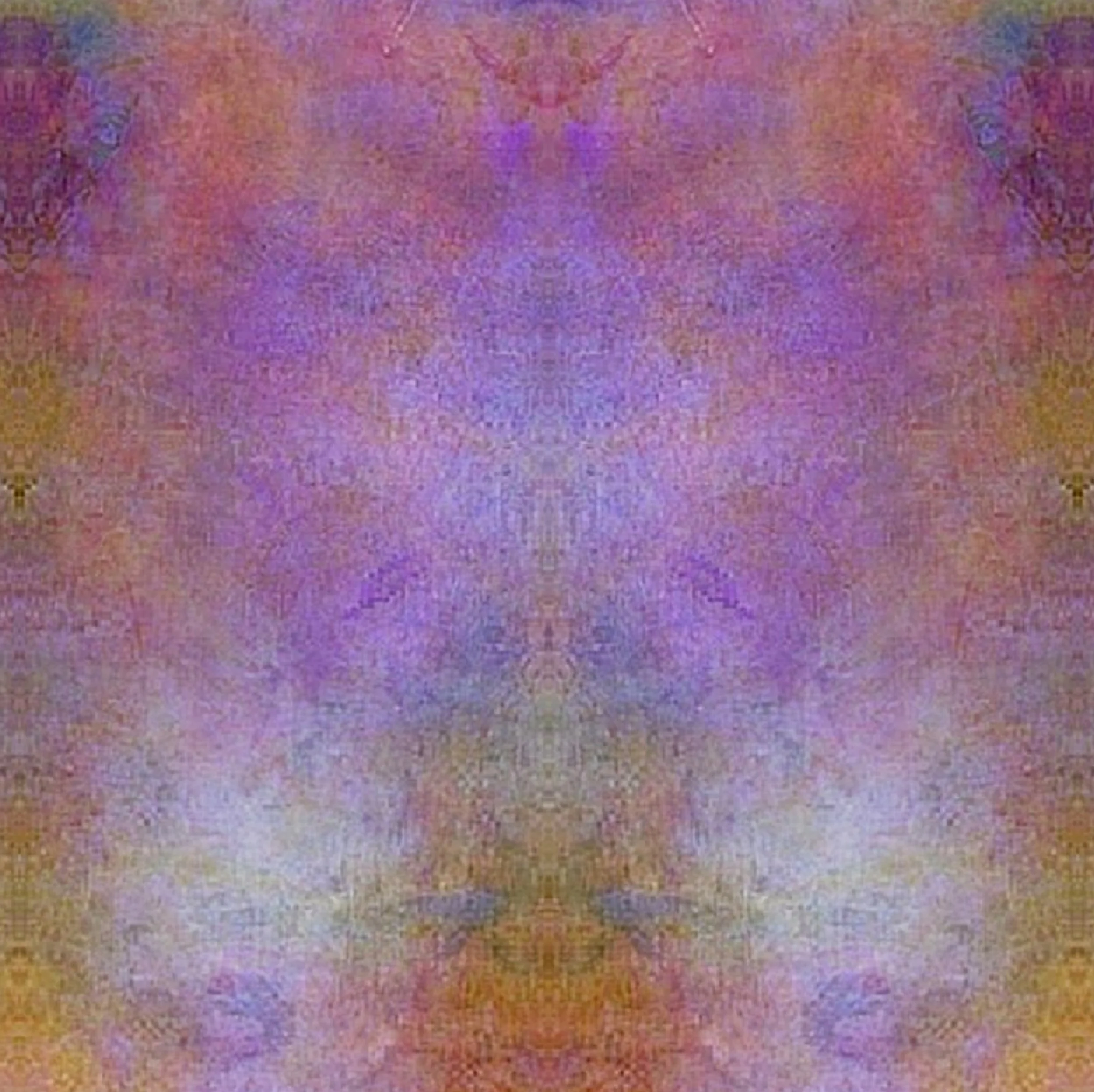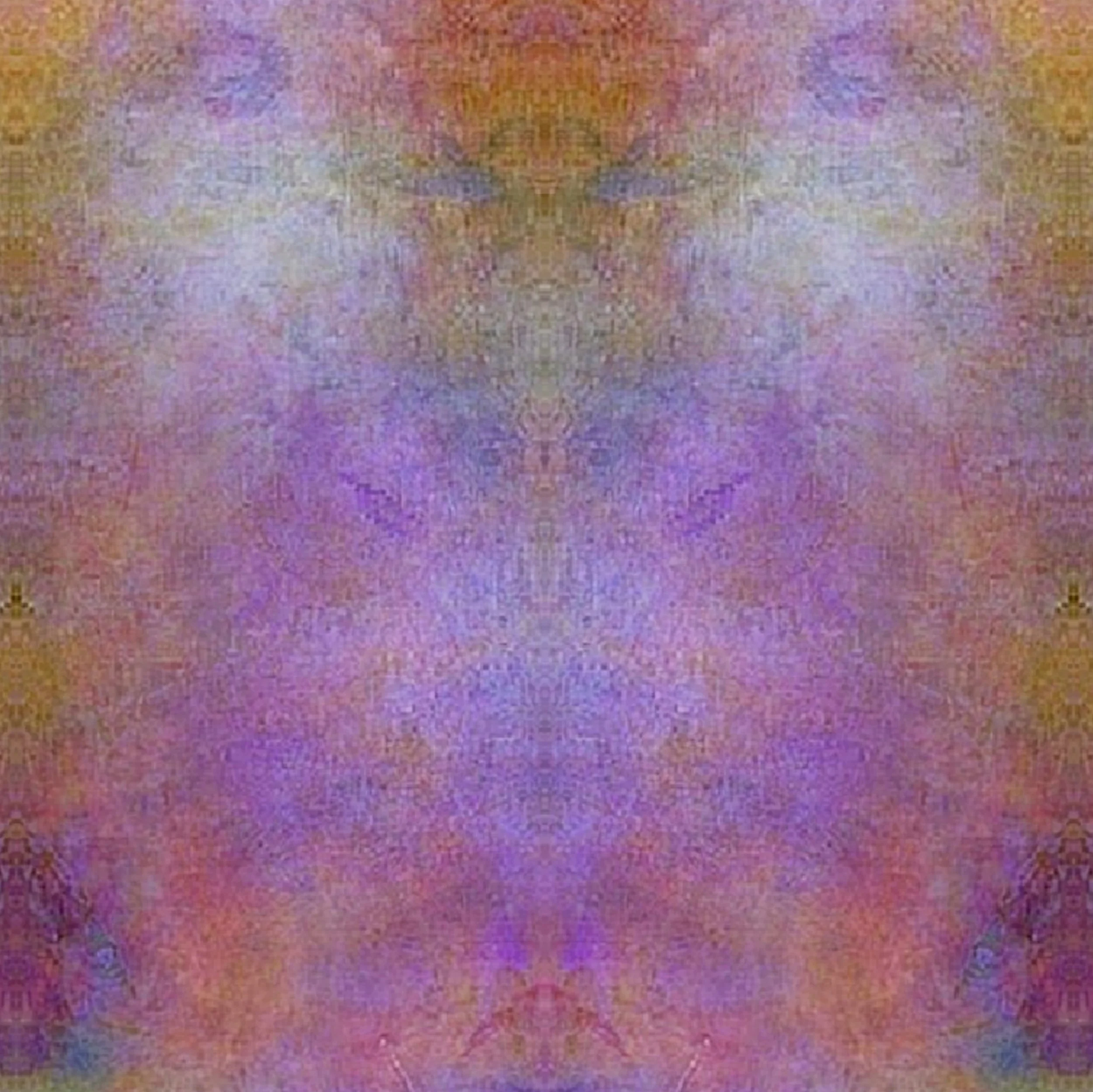A veil of shifting colors hovers between dawn and dream, as if the image were breathing in silence. Within its mirrored depths, faint apparitions begin to surface — faces that dissolve when noticed, figures that retreat into the haze, echoes of something almost remembered. The symmetry acts like a portal, drawing the mind into a space where perception becomes fluid. This work embraces pareidolia not as a trick of the eye, but as an invitation: to see what hides in the in‑between, to meet whatever chooses to reveal itself in the moment you look.